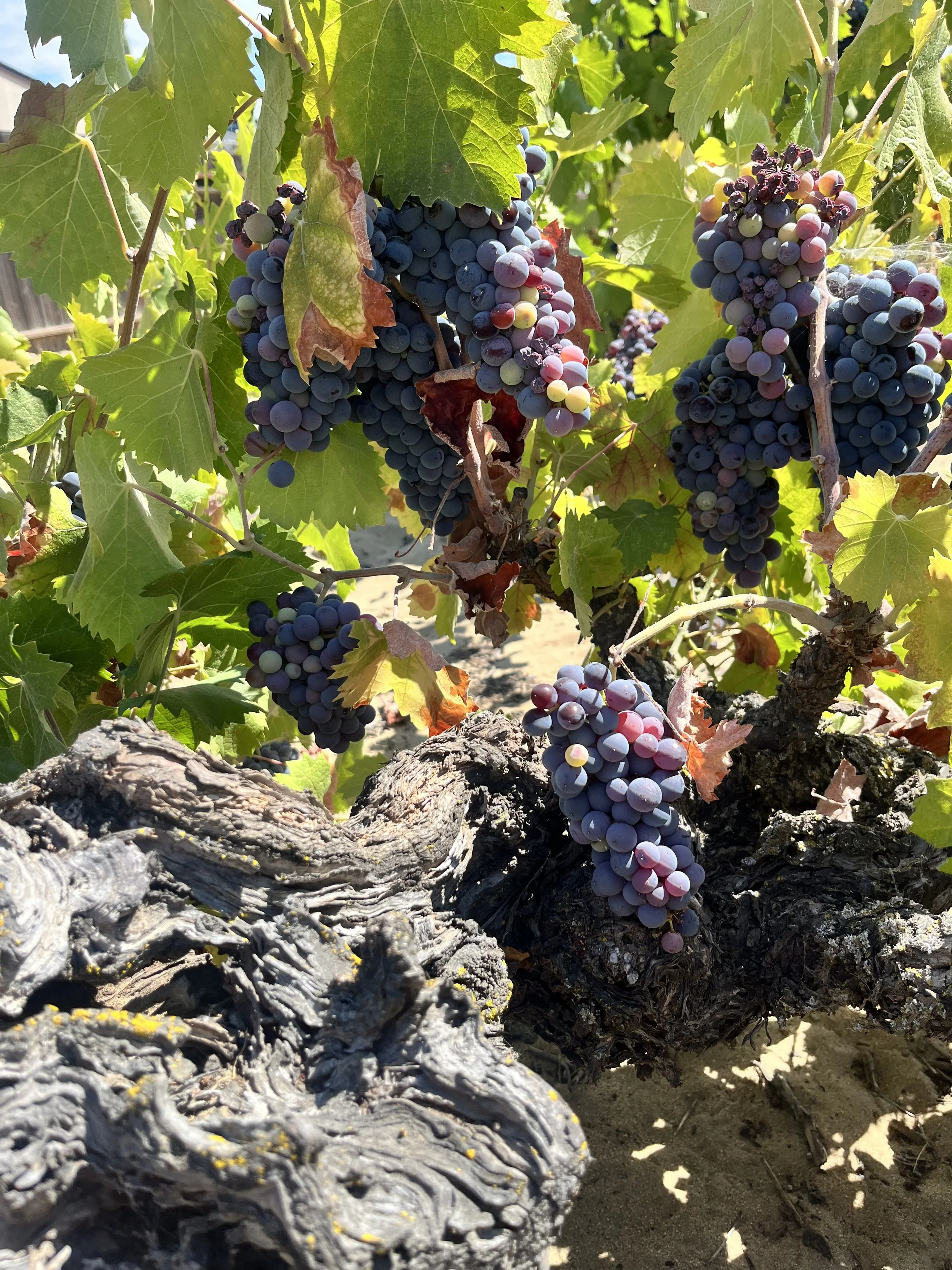 These ancient tree-like vines grow own-rooted in Delhi blow sand, decomposed granite that has been deposited by wind and water. The Delta has hot days and little rainfall, but the vine’s roots go deep (more than 40 feet) to reach the water table below, which allows them to be dry-farmed. Afternoon winds cool the vineyard down at the hottest part of the day. Mourvèdre’s home in Southern France, Bandol, shares the hot days, low rainfall, and strong cold afternoon wind, known there as the Mistral.